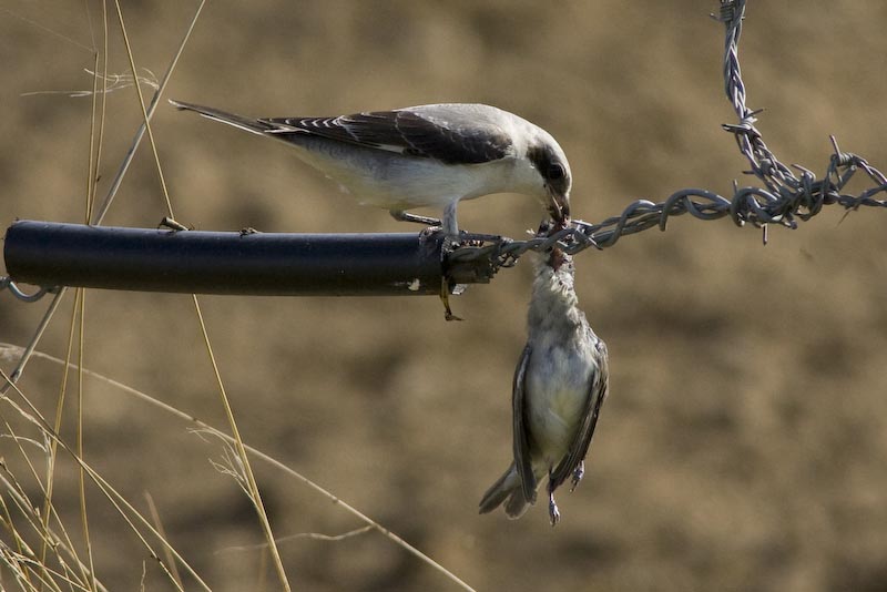 Titel: Juvenile Lesser-grey Shrike carrying dead male blackcap