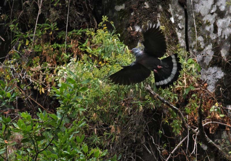 Beskrivelse: I bjergskovene på det vestlige Madeira er en levada der går fra Rabacal til Risco - den ender ved et vandfald med et fald på 100 m. Her så jeg op til 10 Madeira-duer siddende og flyvende i træerne. De første 15 min. så jeg ingen duer - men efterhånden var der lidt bevægelse og så blev de spottet. Der er meget mørkt ved vandfaldet, men fra middag og lidt frem falder der lidt lys ned i området. På levadaturen - var der også Madeira-fuglekonge og Madeira-bogfinke.