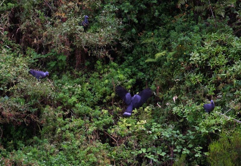 Beskrivelse: I bjergskovene på det vestlige Madeira er en levada der går fra Rabacal til Risco - den ender ved et vandfald med et fald på 100 m. Her så jeg op til 10 Madeira-duer siddende og flyvende i træerne. De første 15 min. så jeg ingen duer - men efterhånden var der lidt bevægelse og så blev de spottet. Der er meget mørkt ved vandfaldet, men fra middag og lidt frem falder der lidt lys ned i området. På levadaturen - var der også Madeira-fuglekonge og Madeira-bogfinke.