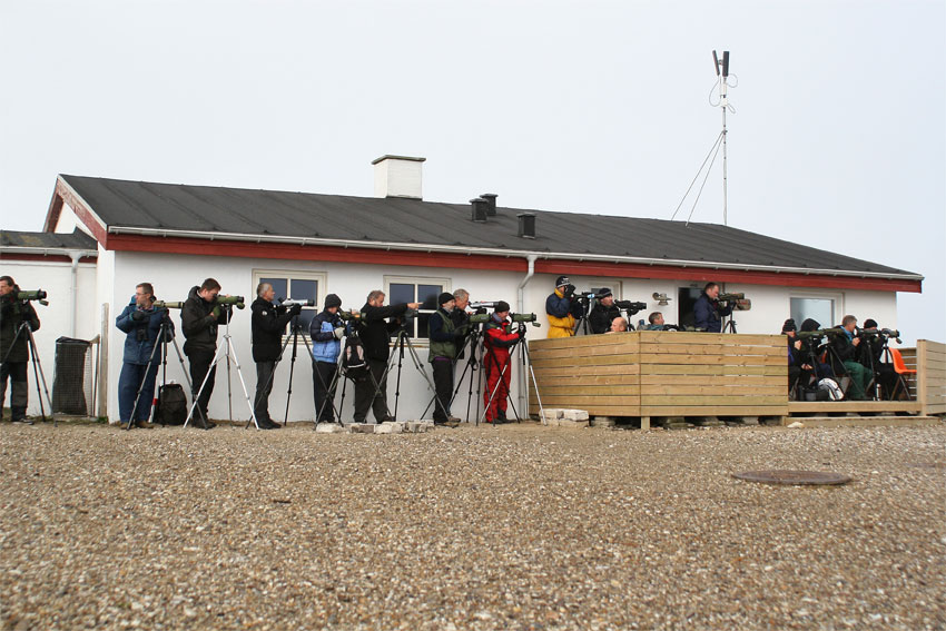Beskrivelse: Rigtig mange birdere havde fundet vej til Ørhage denne blæsende dag i håb om godt havtræk,og der blev set flere stor stormsvaler -Thorshane- Søkonge- Lille kjove med mere.