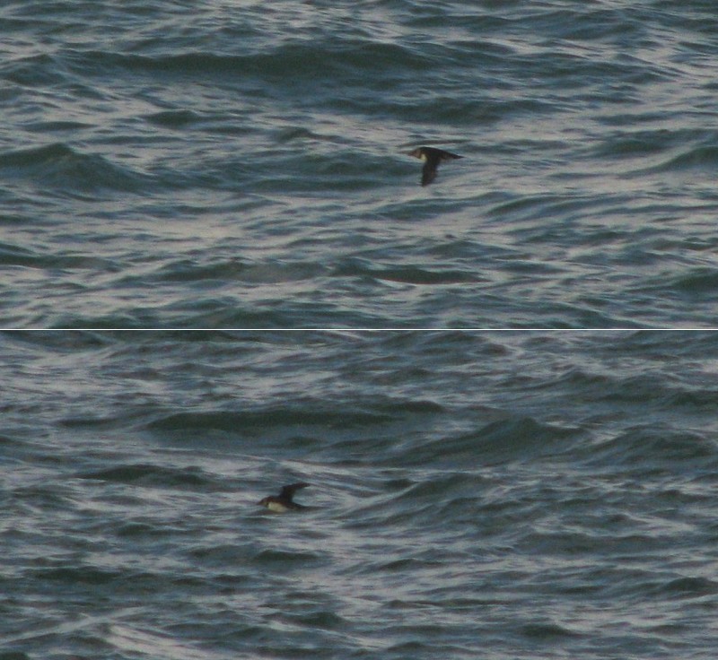 Beskrivelse: Et foto til feltbestemmelses brug af trækkende Lunde. Absolut ikke noget superkvalitetsfoto, men vistnok det første af sin art, der illustrerer hvordan man oftest oplever en trækkende Lunde på havobs i DK.