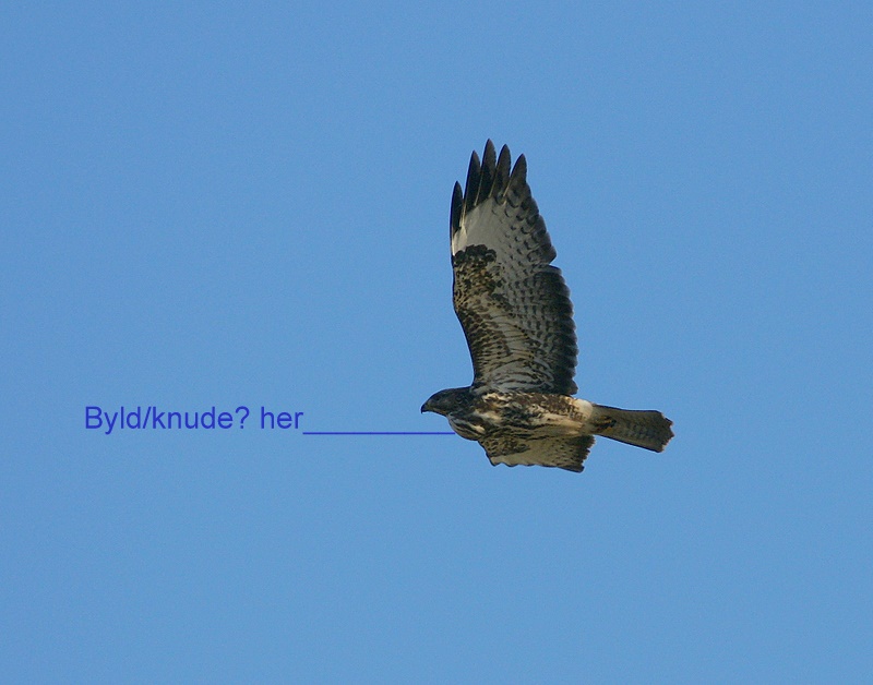 Beskrivelse: Et mindre træk af musvåger gik over Omø i går. Denne havde en meget kraftig udposning.
