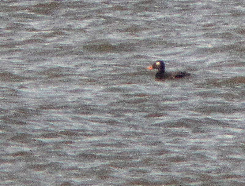 Beskrivelse: Dokumentationsfoto af fløjlsanden på afstand, til sammenligning med andre uploadede fotos. Her ses rødt næb, bredt sort felt mellem næb og øje, samt bredt hvidt felt rundt om og bag øjet på den sibiriske fløjlsand (ifølge den systematik, der følges her på sitet = Amerikansk Fløjlsand ssp.stejnegeri).
