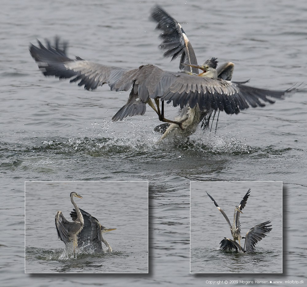 Titel: To fiskehejrer forsøger at drukne hinanden
