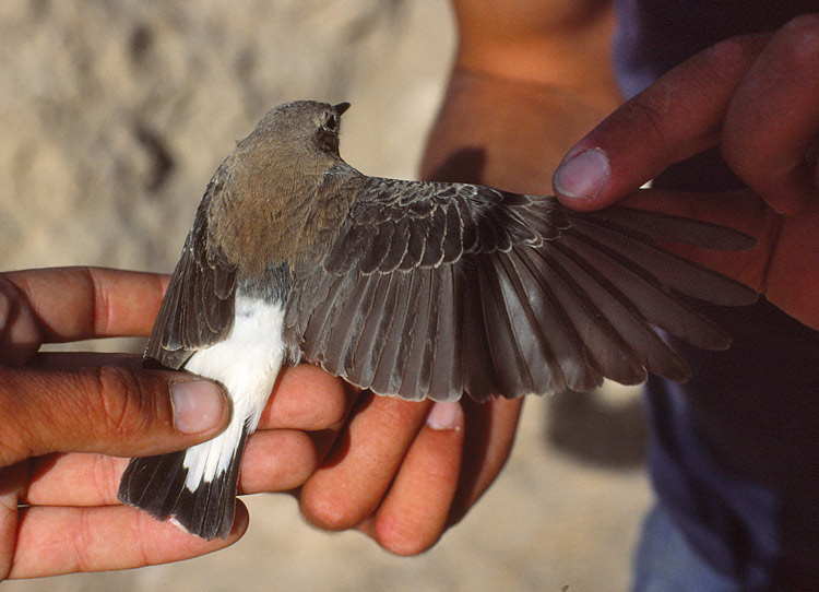 Beskrivelse: Denne Stenpikkerhun er fotograferet i løbet af foråret 1985, allerede dengang blev den diskuteret. Selv mener jeg, at der kan være noget østlig Middelhavsstenpikker (melanoleuca) eller Cypern i denne. Haletegningen passer nok bedst på Cypern, men jeg ved ikke om det ligger indenfor Middelhavs´ variation. Andre bud og kommentarer modtages gerne.