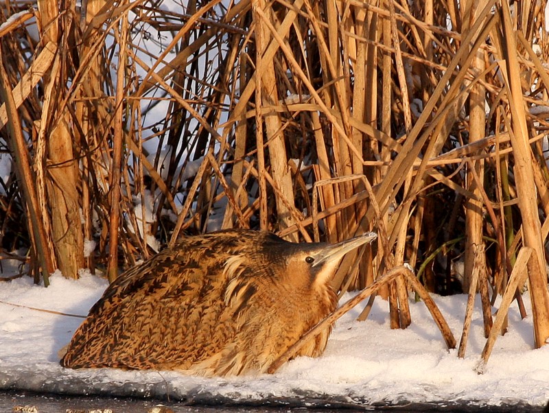 Beskrivelse: Rørdrummen her kunne ikke bruge højre fod. Måske pga de høje frostgrader midt på ugen.