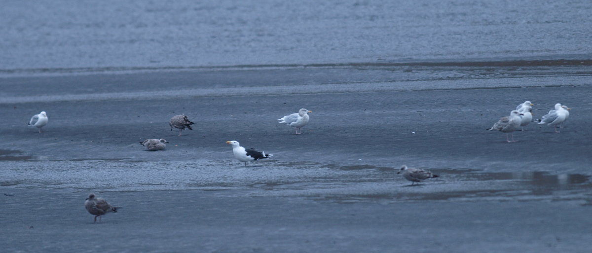 Mit indtryk er, at både gråmåger og hvidvingede måger typisk har lysere hoved og bryst en vores hjemlige sølvmåger i vinterdragt. Denne var dog temmelig mørk med ensfarvet mørkt hoved og mørke tegninger på brystet - og fremstod som havende mørkere hoved end flere sølvmåger.