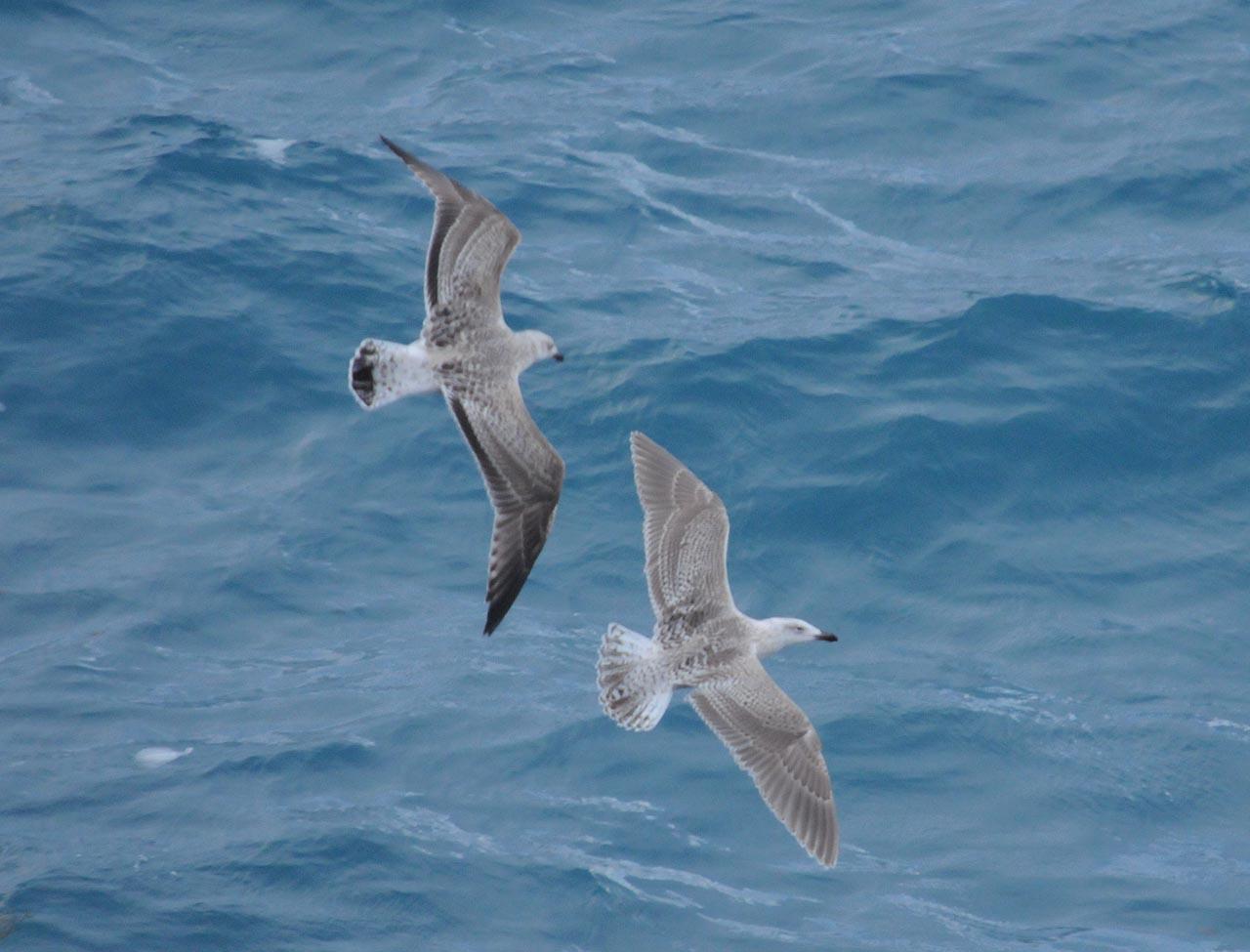 Beskrivelse: Denne lyse måge taget ud af køkkenvinduet skilte sig klart ud fra både unge svartbag, som den ses sammen på fotoet. og gråmåge som den også sås sammen med. Størrelsesmæssigt på størrelse med de store svartbag. Klart meget mørkere end gråmåge. Mørkt næb og lyst hoved. Konklusion: Hybrid GråmågexSvartbag.