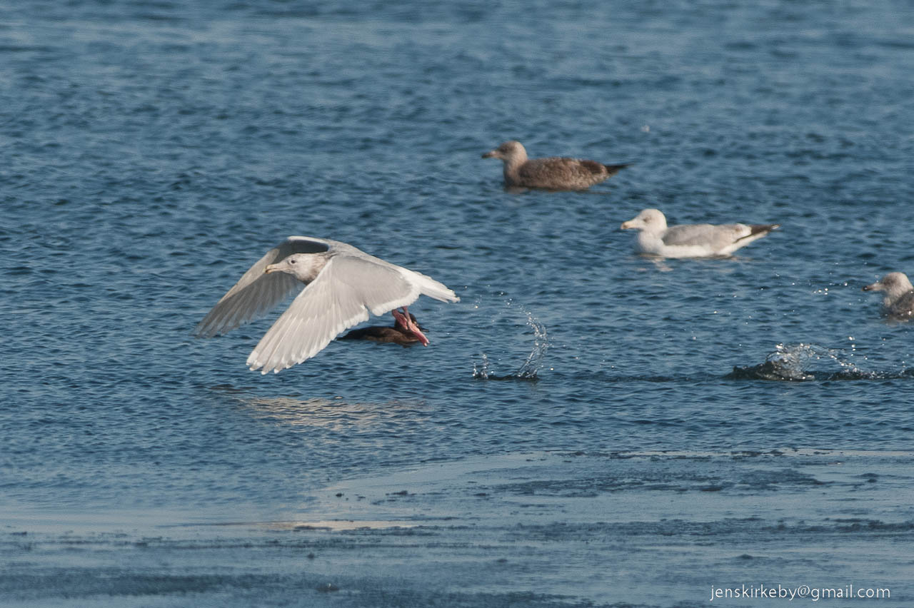 Titel: Gråvinget måge letter fra iskanten ved pier 2 i Århus Havn
