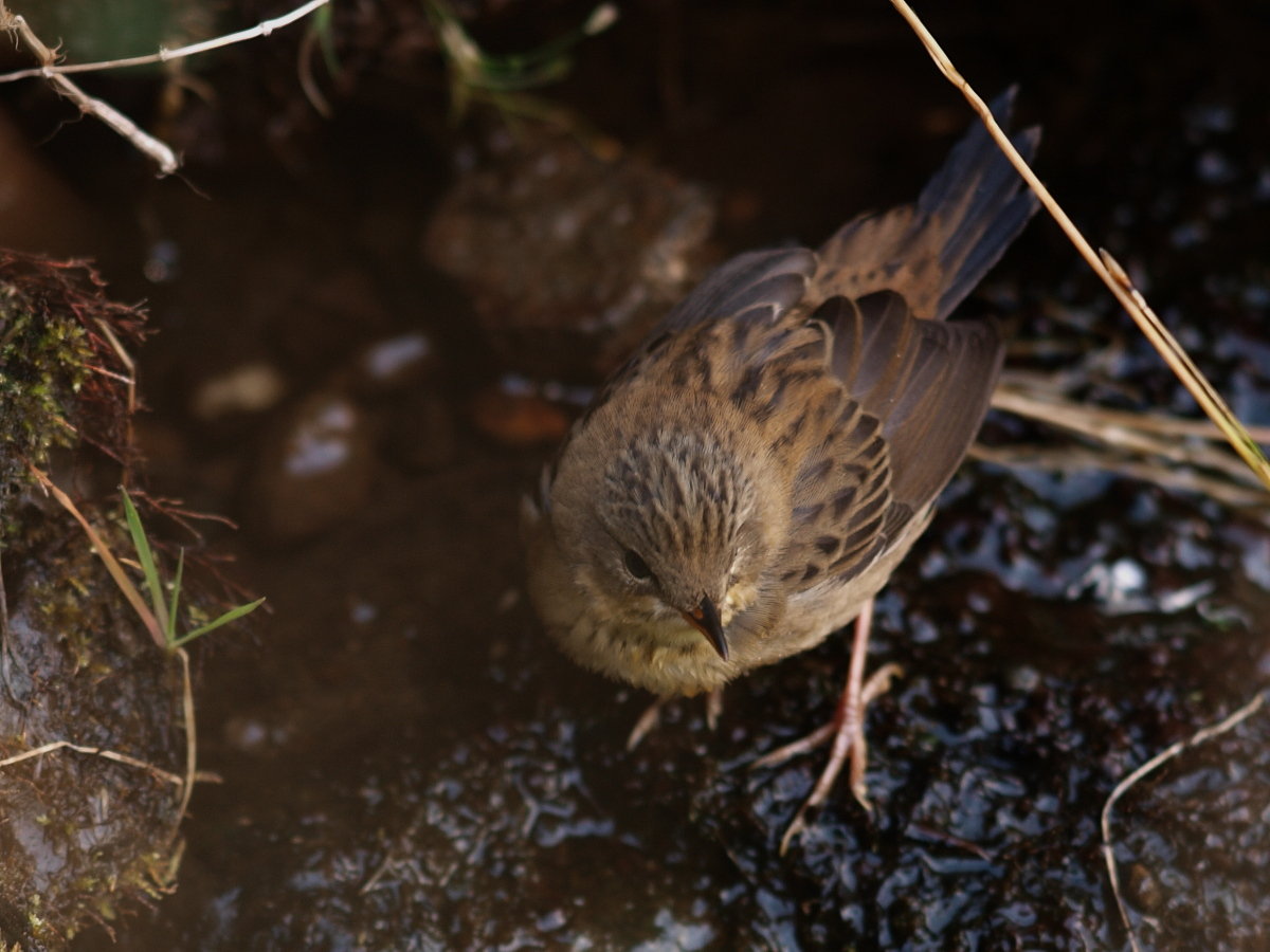 Beskrivelse: Fuglen mangler nogle fjer i halen, men der ses bl.a. lys kant på halefjerene, rustrød overgump og blege kanter på tertialerne.
