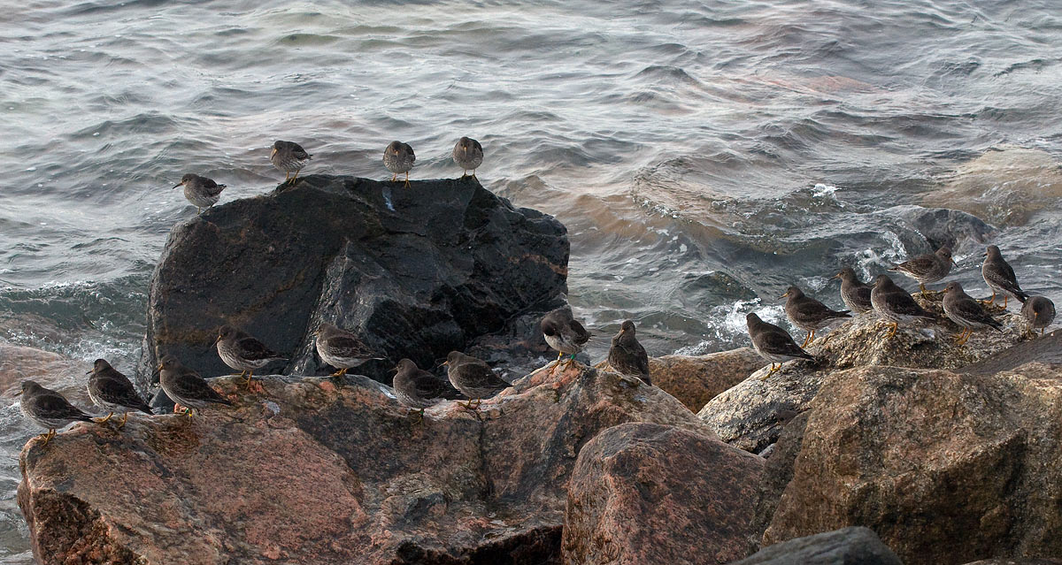 Det ved jeg en del om. Jeg har over vinteren fra sidst i oktober fulgt de sortgrå cr-mærkede fugle. Jeg har omkring 55 obs for perioden. En enkelt mærket på Svalbard, de øvrige på Sprogø og en enkelt på Vresen.