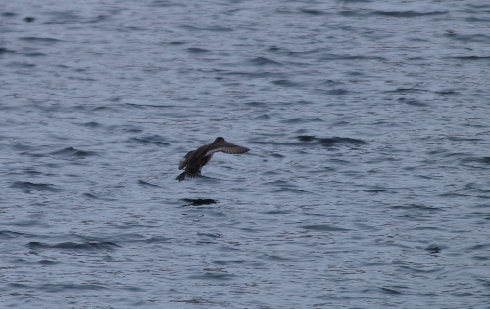 Beskrivelse: I visse belysninger ser den inderste del af vingebåndet på halsbåndstroldand lyst ud.