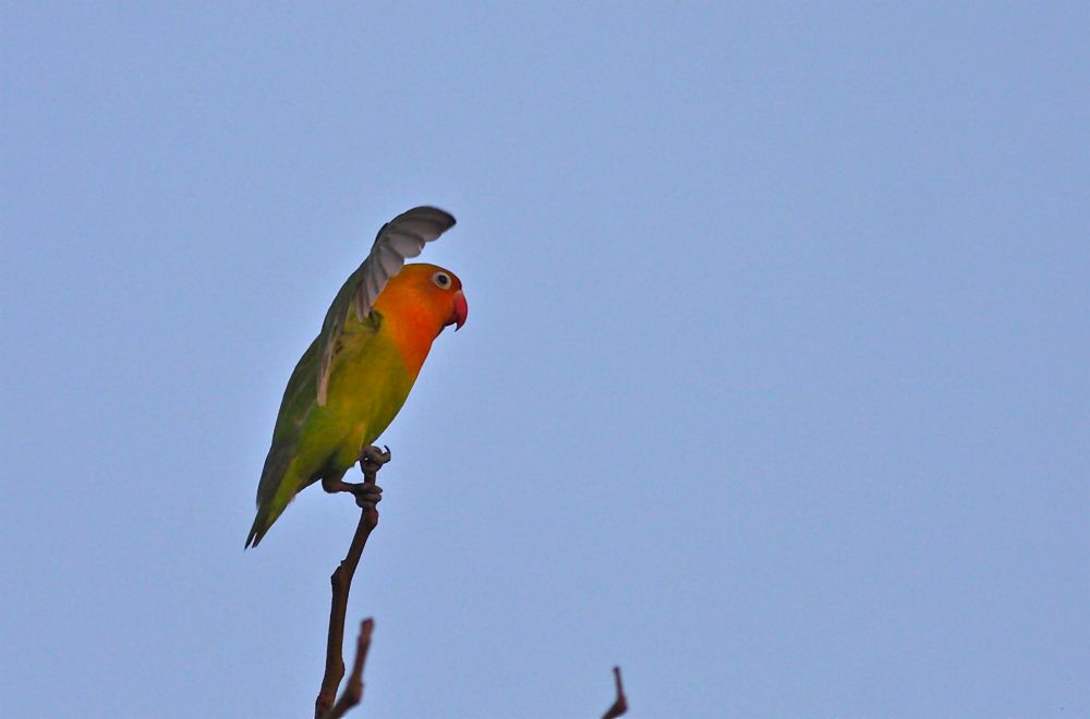 Bestanden af Rødhovedet Dværgpapegøje i Hurghada er ikke helt uproblematisk. Jeg har set billeder derfra der viste dels hybridisering med andre arter (A. personata og A. roseicollis) dels blege mutationsformer (som den på billedet vist også er). Det tyder på at bestanden har en ikke fjern fortid som undslupne fangenskabsfugle.