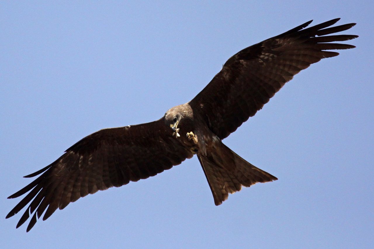Fint billede af Sort Glente, men nærmere af formen govinda, der ligner hjemlige Sorte Glenter (men generelt har lidt lysere indslag på håndfladen), ikke lineatus. Lineatus er vintergæst på den nordlige del af det Indiske Subkontinent, men i øvrigt findes formen govinde jævnt udbredt gennem hele Indien.