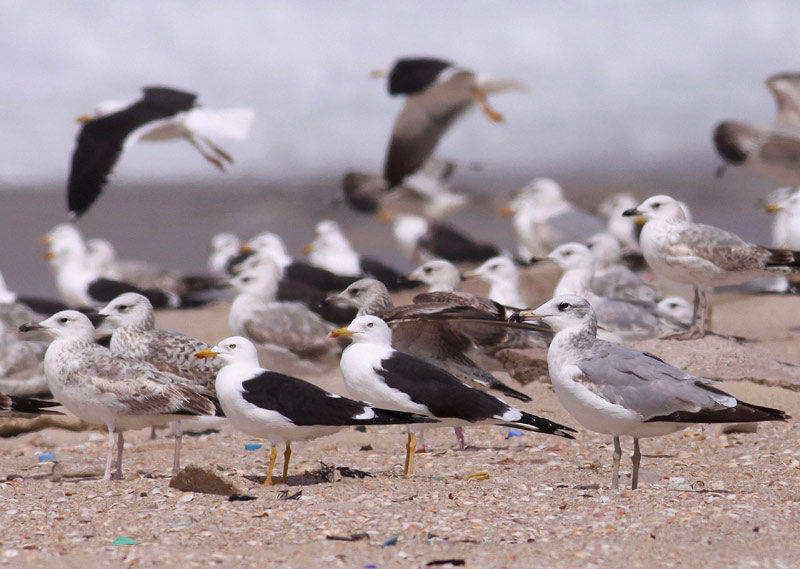 Beskrivelse: Ashdod i Israel er en glimrende lokalitet at studere måger. Medio marts således flokke af Baltisk Sildemåge (der sesi flere ex., omend de ikke ser helt rent sorte ud grundet meget kraftigt sollys), heuglini, Kaspisk måge og enkelte Armenske (her er Ma´agan Michael et bedre valg). Stor Sorthovedet Måge til højre på billedet vækker dog altid jubel....