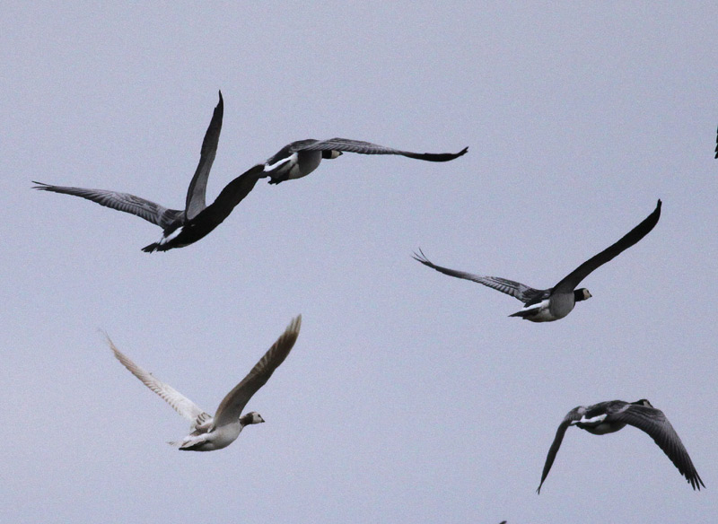 Beskrivelse: Leucistisk Bramgås, let bestemmelig på brune aftegninger af normalt sorte samt størrelse og jizz. Fuglen sås på Mandø ved 8-9 tiden 11.4 2010. Samme eftermiddag sås ved 15-tiden en identisk fugl i en flok ved Sneum Engsø. Eftersom leucistiske bramgæs ikke er specielt hyppige ligger det lige for at spekulere i, om der var tale om samme fugl. Kommentarer modtages gerne.