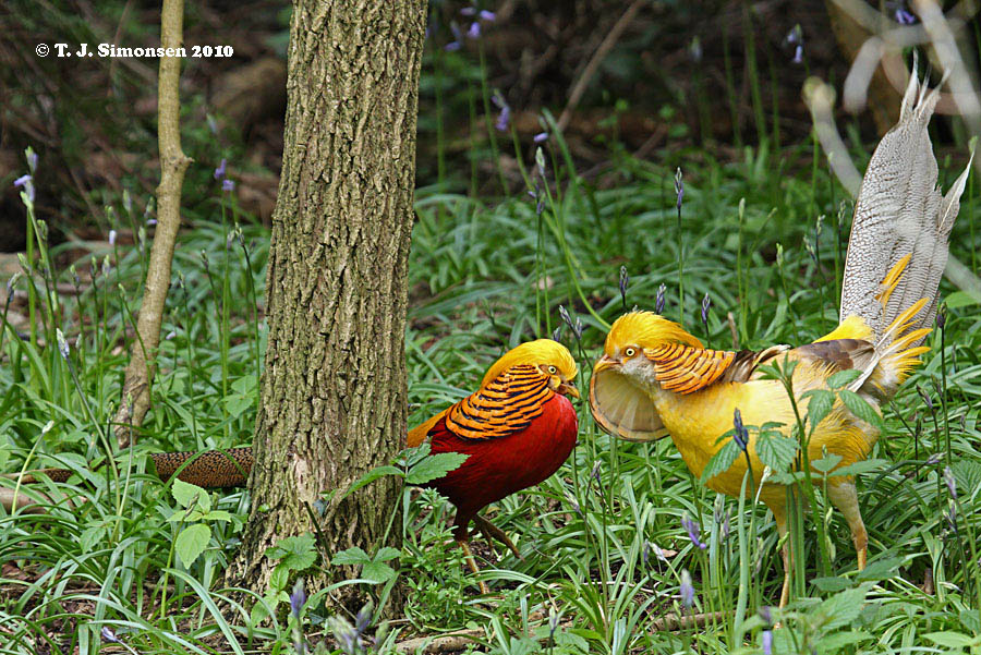 Beskrivelse: Show off mellem en almindelig rød og en gul guldfasan han.