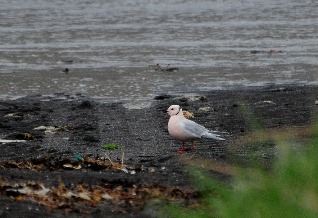 Beskrivelse: Fuglen blev spottet lige før skumring i diset vejr, et pragteksemplar af en Rosenmåge.