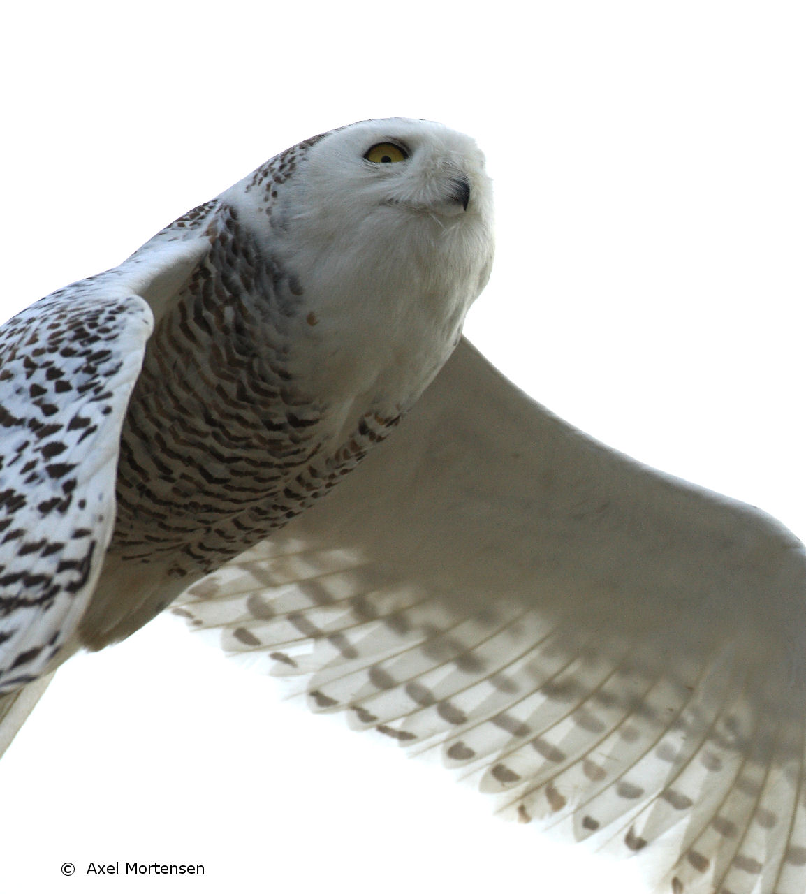 Beskrivelse: Efter at have tilbragt en eftermiddag på taget af restaurant "De 2 have" lettede sneuglen med kurs mod nord.