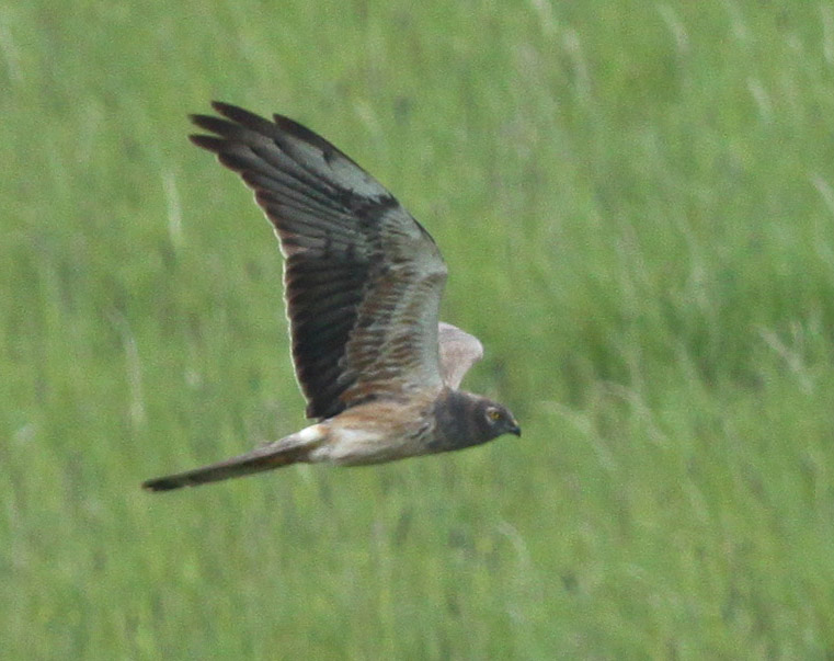 Beskrivelse: Bør være Hedehøg pga. markante sorte vingespidser og mørk bagkant på hånden. Desuden stort set manglende lys halskrave på dette fældningsstadie, hvor gråtonede fjer er indblandet i brune på hoved, hals og forbryst (2k han), og Gult øje svarer til han på dette tidlige alderstrin.