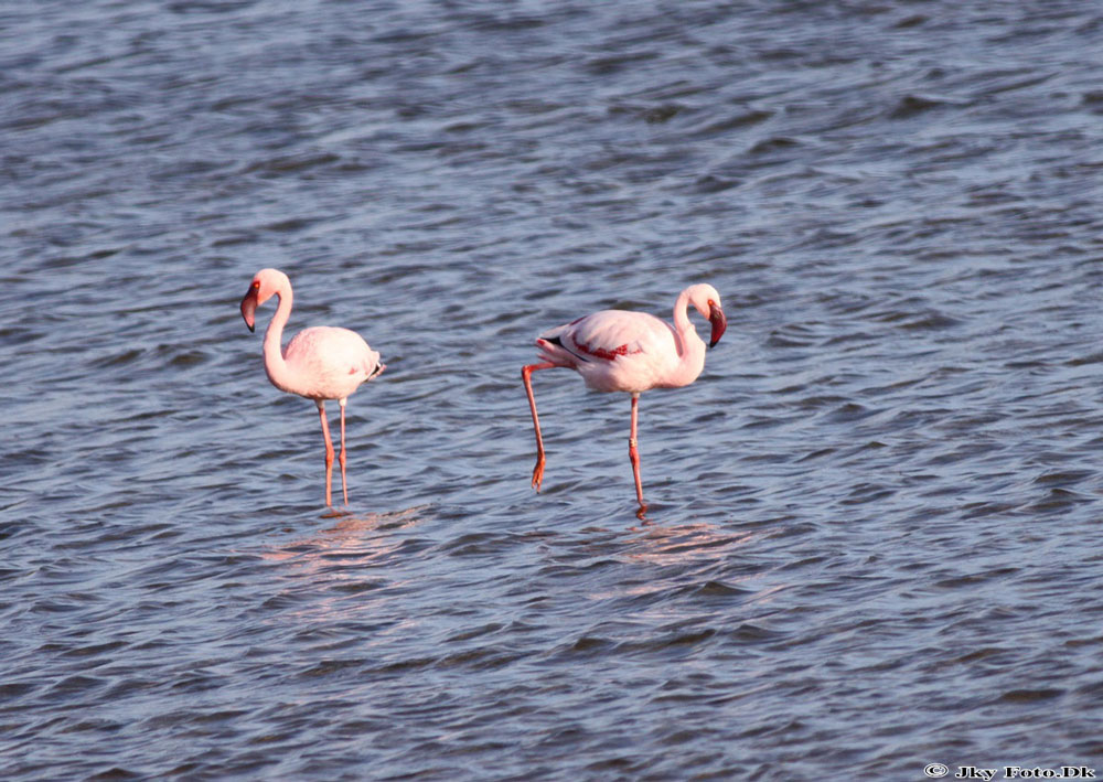 Beskrivelse: disse 2 lille flamingo blev set på bygholm d 17 maj. den ene bar en rød ring med hvide bogstaver,,CG,, over det ene knæ. efter lidt opsporings arbejde med Kjeld tommy pedersen fra ZM som formidler, kunne Joop Treep fra den hollandske flamingo gruppe oplyse at den i 2002 var stukket af fra en fuglepark i belgien, og siden set/aflæst jævnligt i holland, især ved Waddensea. Andy Paterson fra den spanske flamingo gruppe, har meddelt at en lille flamingo med rød ring, er set i det centrale Spanien, men ikke har yderligere oplysninger om fuglen,, har den også været på visit i Spanien?? Det må være de samme 2 fugle, som d 25/26 maj fløj forbi Øland, sverige og set i Finland d 27 maj. Fuglene kan således henvises til kat D, men flotte er de.
