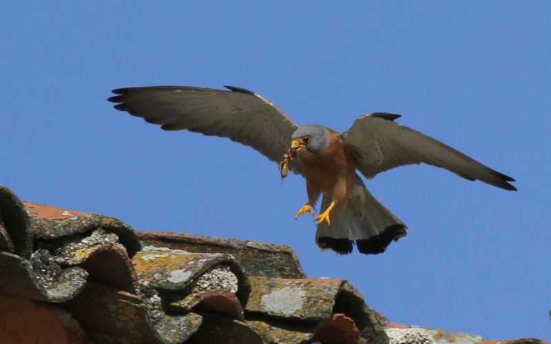 Beskrivelse: Lille Tårnfalk er meget medgørlige i den lille koloni under taget på tyrefægterarenaen i Trujillo, Extremadura.