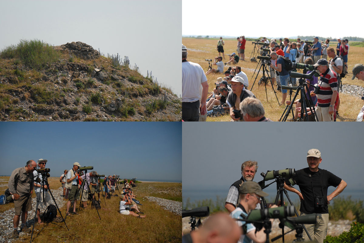 Beskrivelse: The culmination of the great desert treck to see Scandiavia's first White-crowned Wheatear. 7.74 Km on the hottest day of the year.