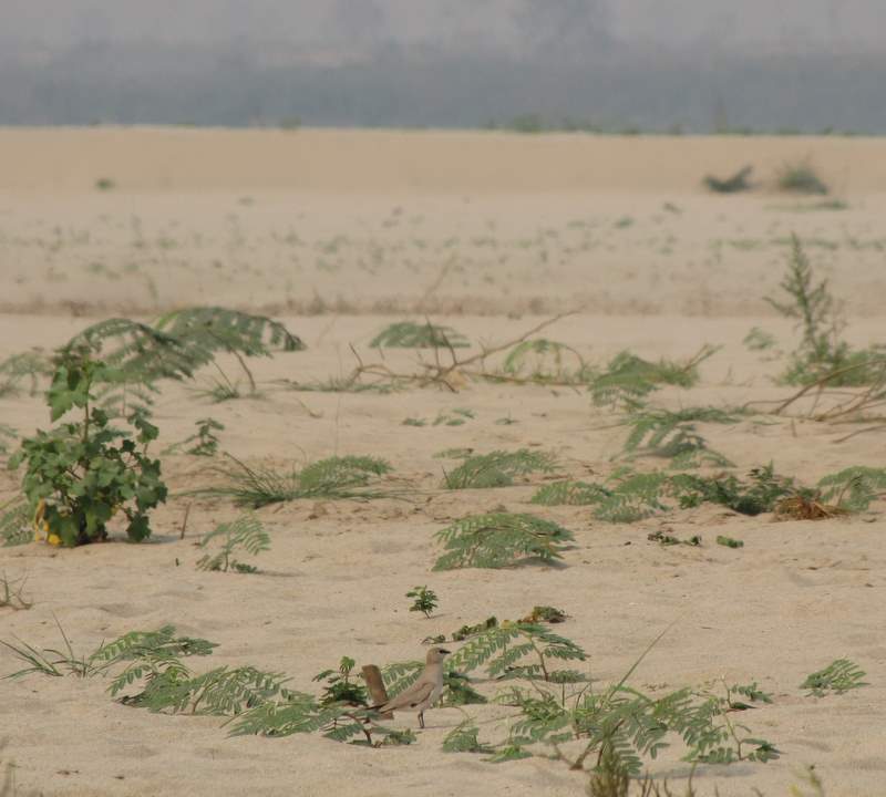 Beskrivelse: Pga lav vandstand i Mekong floden var der blotlagt meget store områder med sandbanker, lige det rette element for braksvalerne.