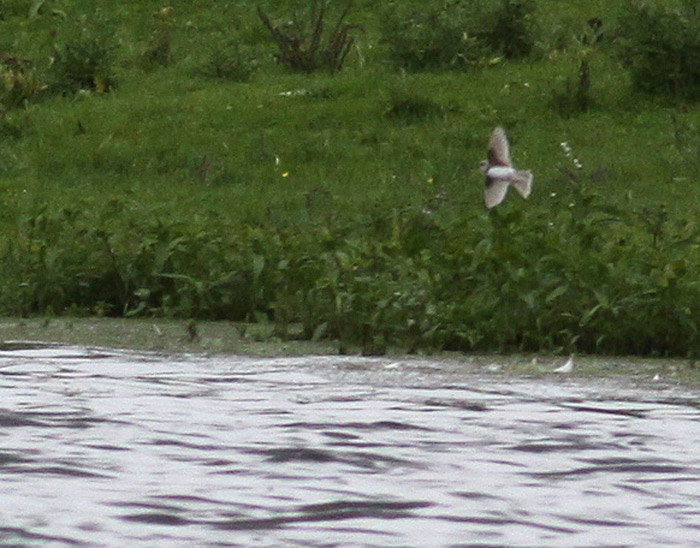 Beskrivelse: Leucistisk Digesvale med mere normalt brunt brystbånd og - grundet at øvrige del af vingen var misfarvet - påfaldende afstikkende mørke undervingedækfjer, der blandt ukyndige kunne lede til bestemmelse af Bleg Klippesvale, hvis man kun støtter sig til felthåndbøgernes kendetegn - oversiden var dog påfaldende beigehvid, og fuglens ringe størrelse samt proportioner afslørede den direkte - forunden naturligvist brystbåndet.