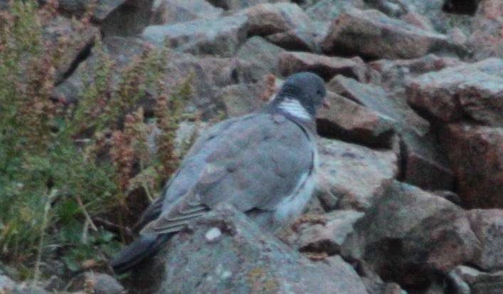 Beskrivelse: Min kollega og jeg gloede en ekstra gang, da denne ringdue pludselig fløj op foran os i Ittoqqortoormiit/Scoresbysund i Østgrønland her i torsdags! Den fløj en omgang og kom tilbage og satte sig heldigvis igen, så vi kunne fotografere den. Det var nok nærmest det sidste sted, vi havde forventet at se sådan én. Der kan næsten kun være tale om en "ship-assist", for hvordan skulle den nå til Grønland ved egen hjælp? Ittoqqortoormiit har kun besøg af 2 fragtskibe fra Danmark om året og det seneste havde været i byen den 27. juli. Mon ikke den har fået et lift? Vi så den 3 dage i træk - den holdt til i det samme sparsomme vegetation. Ittoqqortoormiit ligger på 70,5 grader nord!