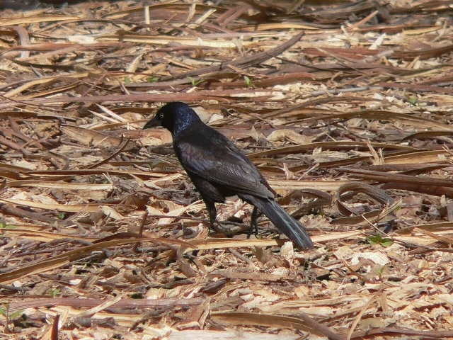 Måske var det en relativ lille hun sammen med gruppe han-Grackler. Det er ikke ualmindeligt at se en tydelig størrelsesforskel mellem individer af kønnene. Hunnernes hale er også ofte meget mindre kileformet. Noget der er ualmindeligt, er at se Rusties sammen med andre arter Blackbirds, og dette synes specielt at være så om foråret. Hannerne er næsten ensfarvet sort med ganske lidt kontrast mellem hoved og ryg, og hunnerne er for det meste sort-grå. Jeg tror denne fugl er en Grackle af "kyst-racen". Den synes at have overvejende sortbrunlig krop og vinger med en smule "iridescence" hist og pist.