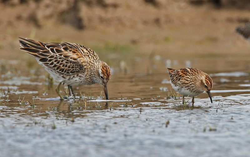 Titel: long-toed stint with sharp-tailed sandpiper