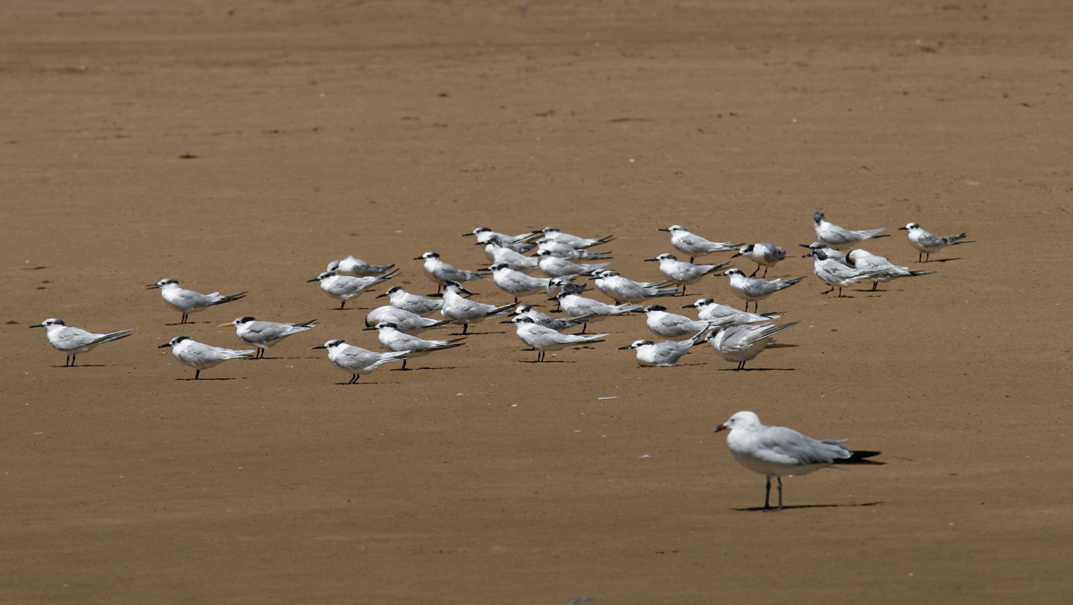 Beskrivelse: På stranden øst for Tarifa, raster der ofte bengalterne sammen med splitterner. Bedste mulighed for at se arten er om morgenen, før kitesurferne indtager stranden.