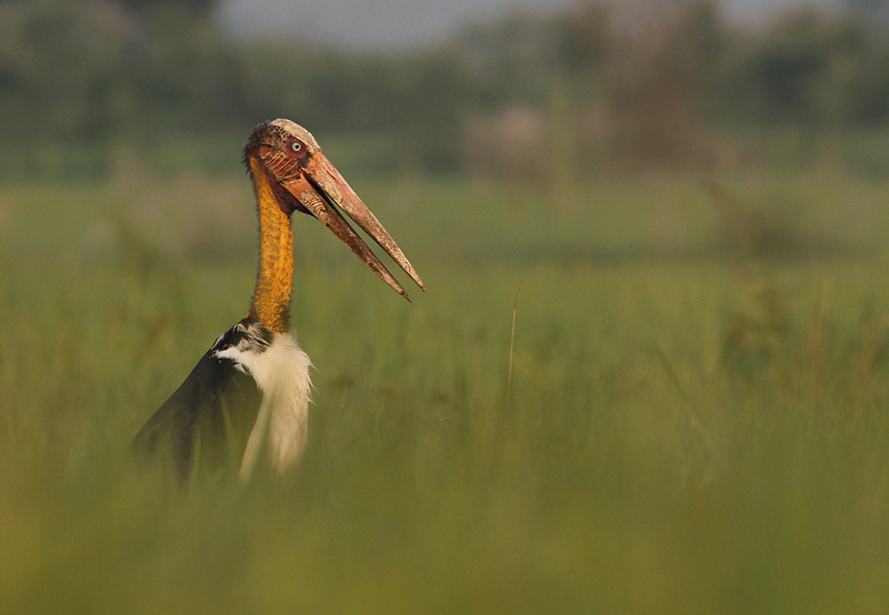 Beskrivelse: This remarkable species is globally threatened. The strongest populations remain in NE India, Cambodia, and on Sumatra. The total world population is estimated at around 7000. This huge stork was seen quite regularly in Kapilvastu district in southern Nepal during my month-long stay there.