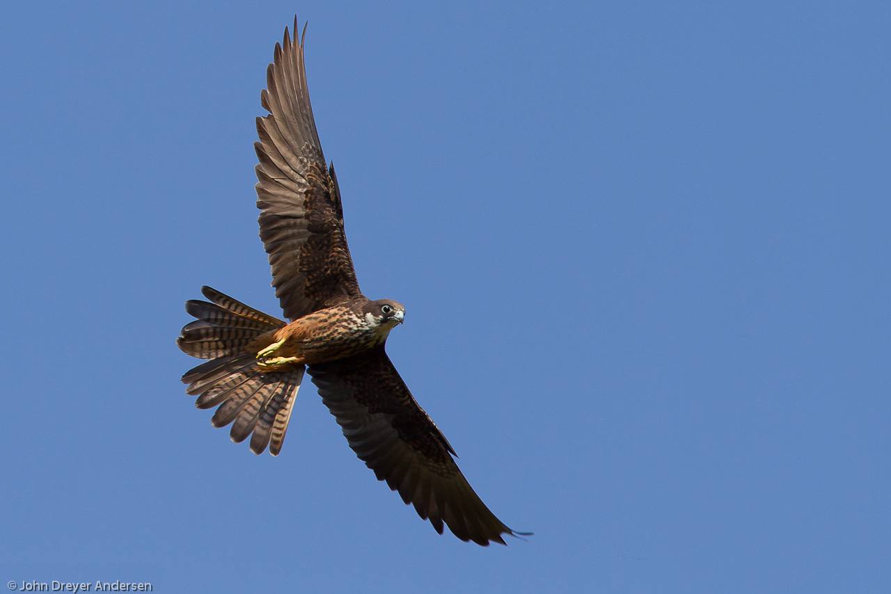 Beskrivelse: Kom jagende lavt over trætoppene en tidlig morgen