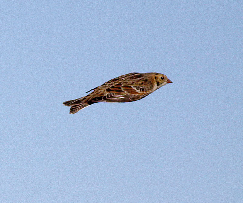 Beskrivelse: Lapværling er en ret stor og "svær" værling. Den er her søgt fanget i flugten, hvor den som regel afslører sig på sit karakteristiske kald: "trrrt" fulgt af et nedadgående "pyu". Fuglen er kraftigere end andre værlinger, oval o formen og hos efterårsfugle tit med meget lyst hoved, hvor man selv i håndkikkert ser sort øje mod lys tøjle og kindens mørke grænse. Er lyset godt ser man desuden hvide vingebånd der omgiver et rustrødt felt, der er helt og aldeles artstypisk.