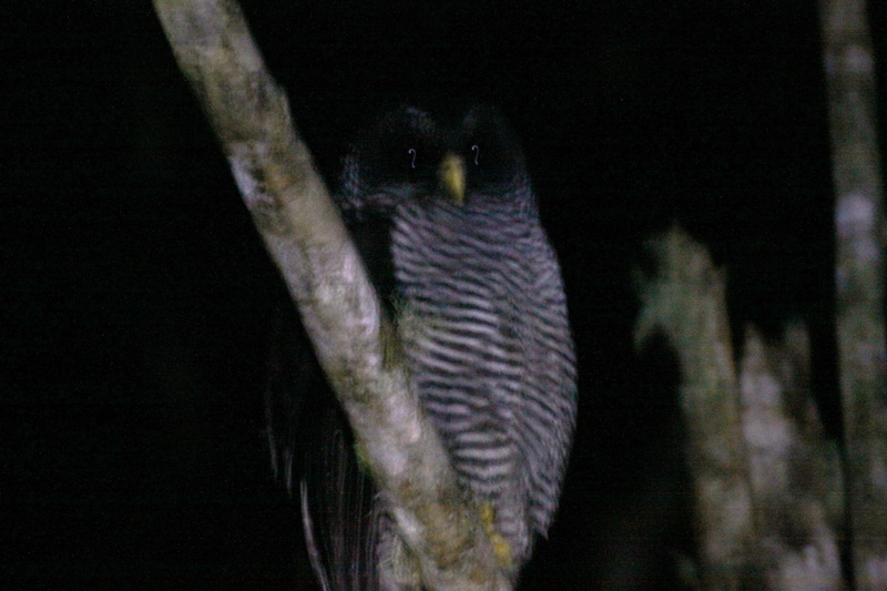 Beskrivelse: Denne ugle er ikke forsynet med latinsk navn, idet den ikke er beskrevet for videnskaben endnu! Lokaliteten ligger på Andes-bjergenes østskråning en dagsrejse fra Quito. Fuglen er en "logo-art" for den stedlige "San Isidro Lodge".