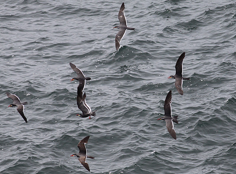 Inka-terner ser man tit i tætte flokke, der både kan styrtdykke ala sterna-terner, og snappe fra overfladen - det sidstnævnte mest under meget stille vejrforhold. Jeg fik indtrykket,at plukken fra overfladen nok var noget hyppigere end hos hjemlige sterna-terner. At jeg relativt oftere så arten svømme end jeg mindes at have set andre terner, kan være en tilfældighed.