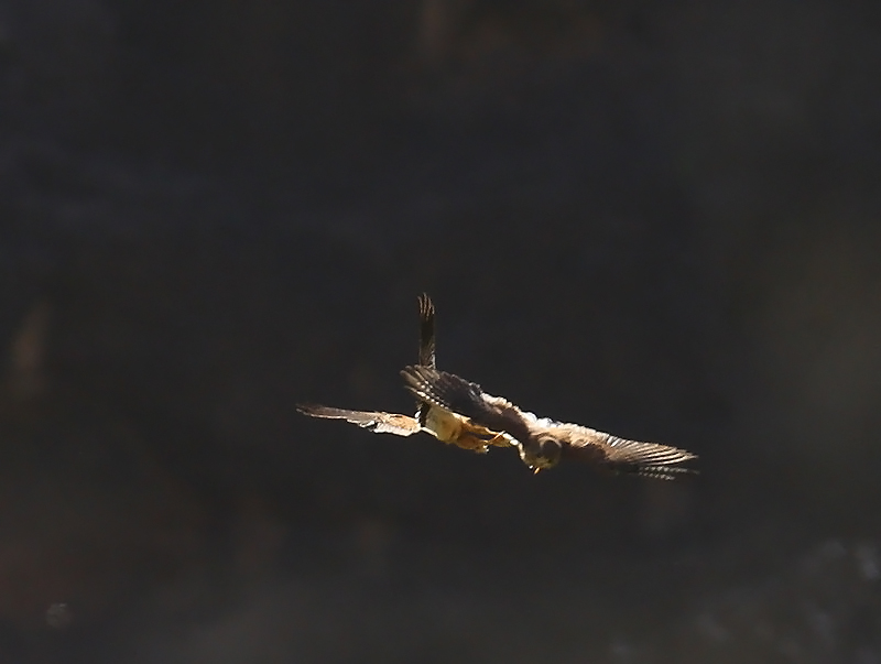 Beskrivelse: Cirklende nedad med et godt tag i hinandens fangere.