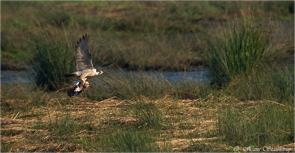 Titel: Vandrefalk med Skovskade