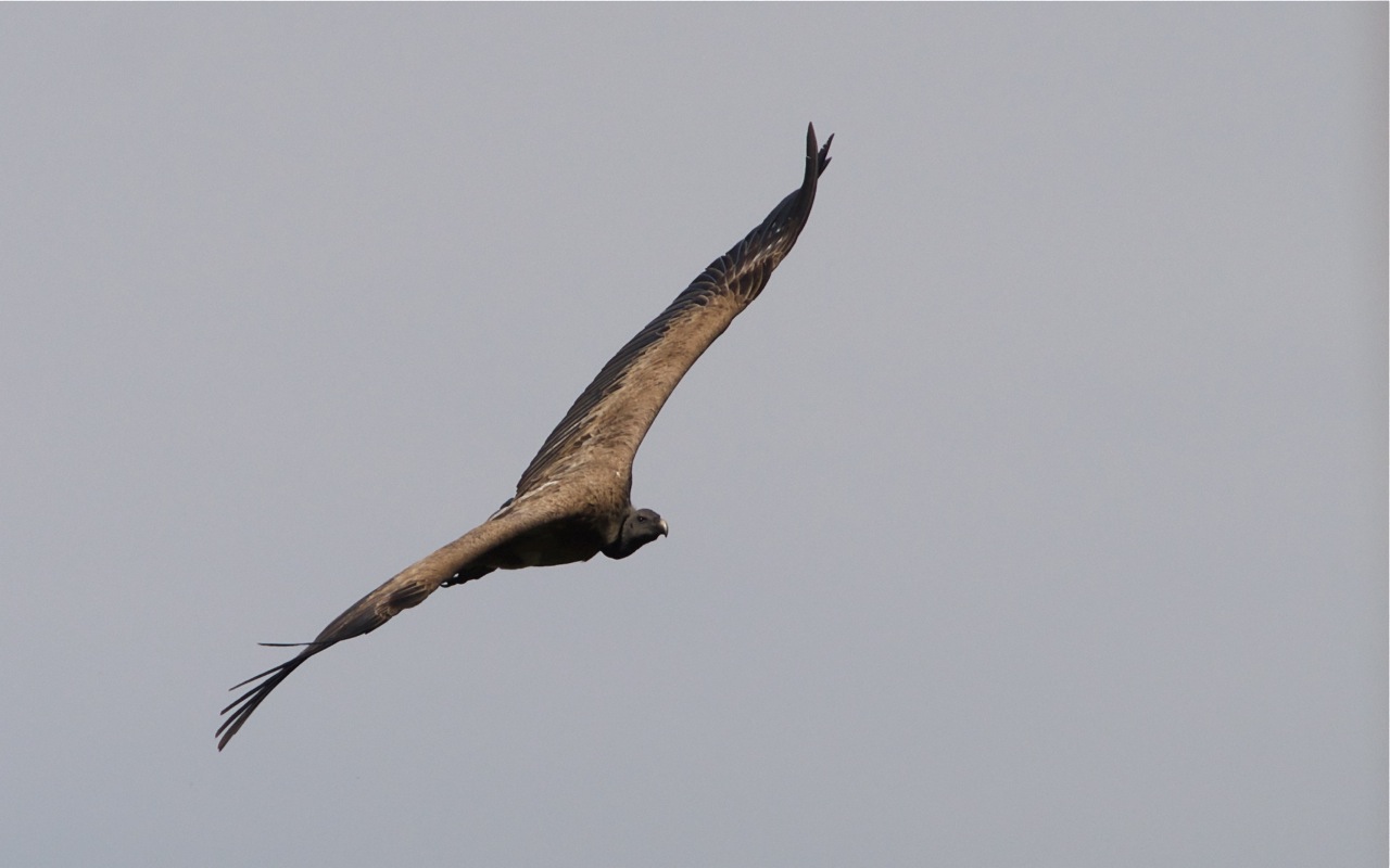 Beskrivelse: Vi nød indflyvning af Himalayagribbe til et ådsel skjult i underskoven, da denne mørkhovede sag dukkede op i søgeren: Langnæbbet Grib - adult ex. af denne stærkt truede art.