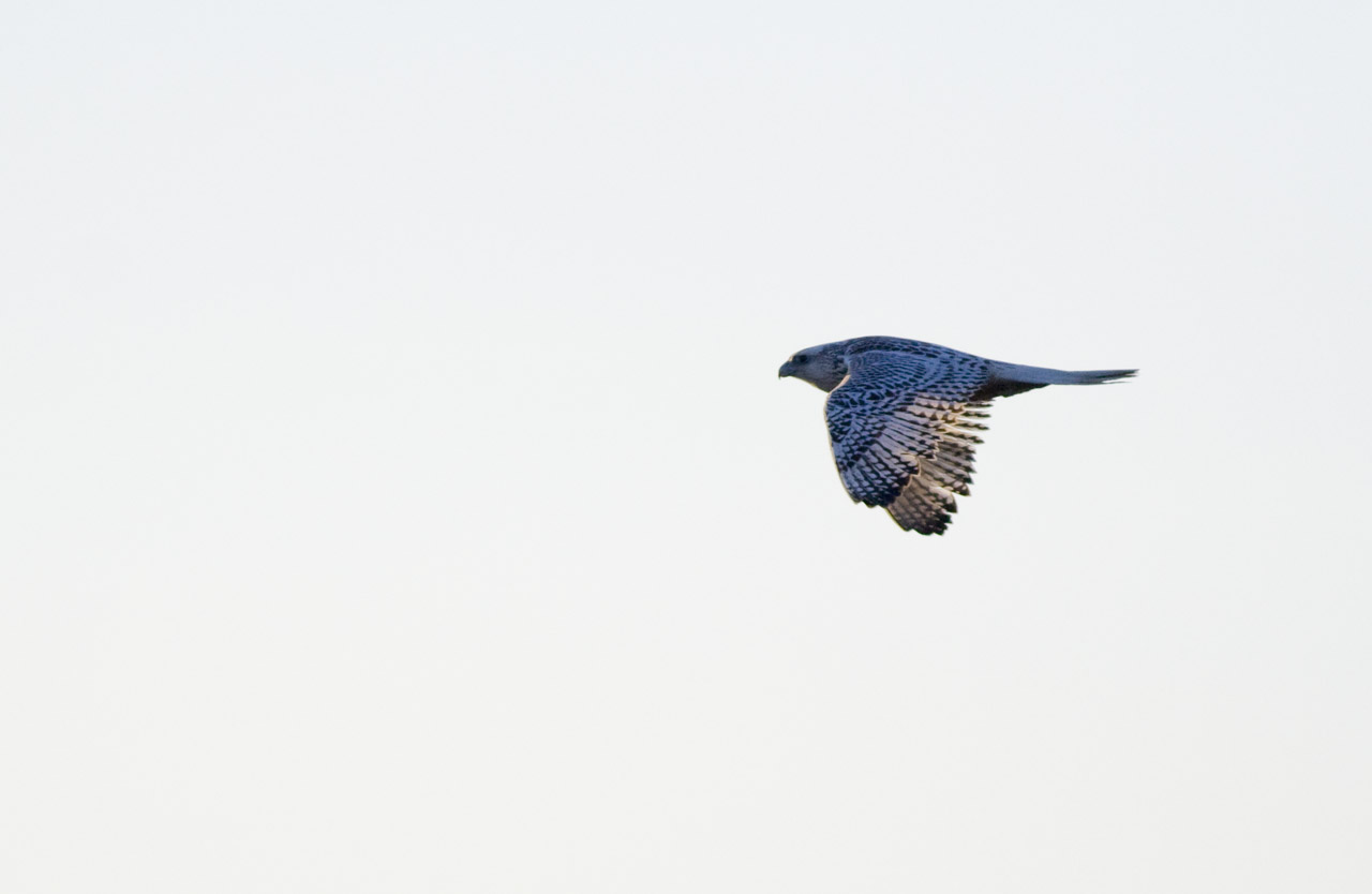 Beskrivelse: Jagtfalk er almindelig omkring Nuuk i trækperioden, men det gør ikke synet mindre smukt!