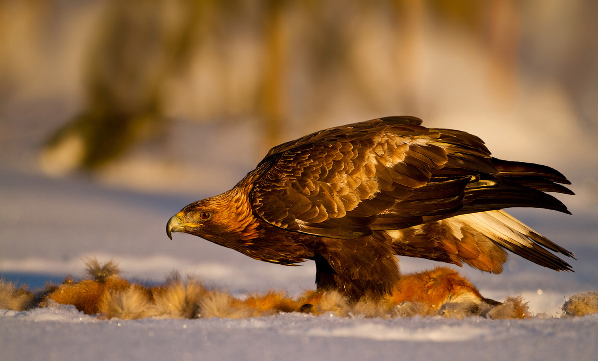 Ørnen er fotograferet en lille halv time før solnedgang.