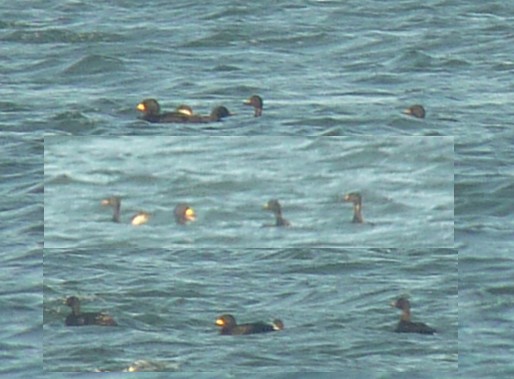 Flokken af Sortænder ligger i et tyndt bånd op langs Sønderstrand og Lakolk Strand og mellem nedkørslerne til Lakolk Strand og Sønderstrand.