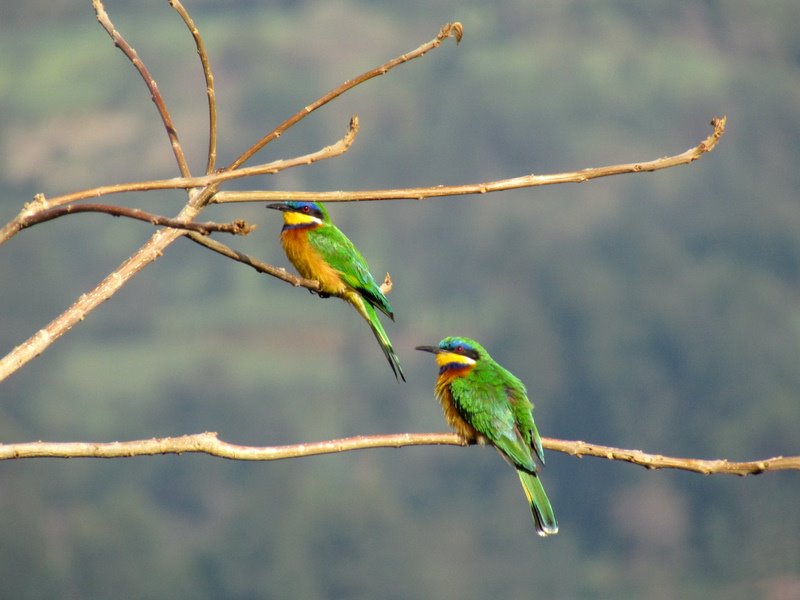 Blandt andet har disse fugle blå pande, mere orange underside, og forekommer i skovbryn og åbne bush-områder, mens bestande i fex. Uganda lever i vådområder.