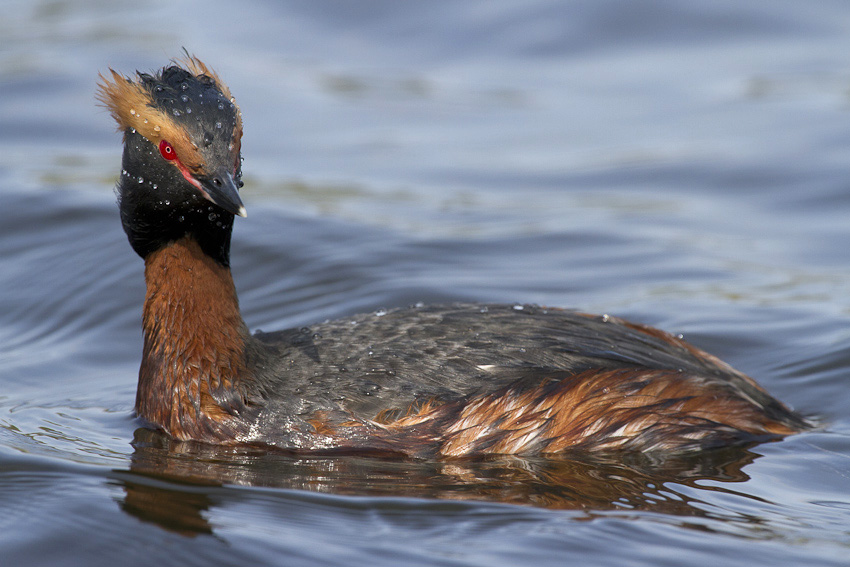 Beskrivelse: Nordisk Lappedykker i en lille sø ved hornborgasjön