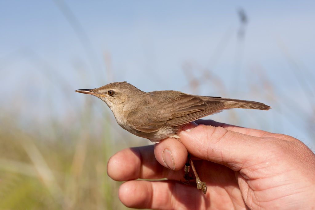 Beskrivelse: Fugl med "Moskva"-ring genfanget og fremvist af RoC. Mere billedmateriale er tilgængeligt <a href="http://jorgenkabel.blogspot.dk/2011/06/buskrrsanger-grenen_28.html">her</a>.
