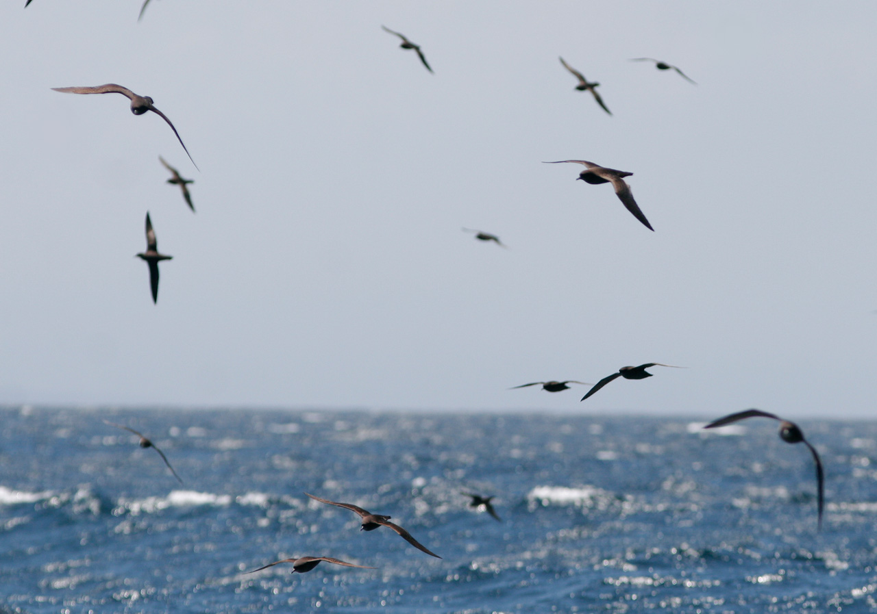 Beskrivelse: Compared to Sooty Shearwater, this shearwater roams the seas in swarms and can not bee lured by chumming. It resembles Sooty, but hence the name it is remarkably short tailed. It also glides swiftly using less but powerfull wingbeats, giving the impression of a Needle-tailed Swift of the seas.