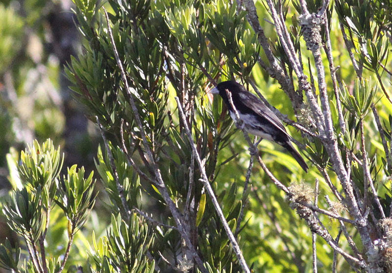 Sammenlignet med illustrationen i "A field guide to the Birds of Brazil" (Van Perlo 2009) er hannens næb lysere, som det ses her: lysende blåhvidt.