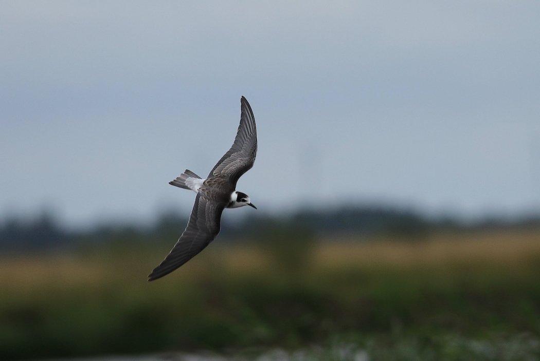 Beskrivelse: Mon der er tale om den variant, der nævnes i "Fugle i felten": ungfugl med mørkere ryg og lysere overgump, hvilket leder tanken hen på ung Hvidvinget Terne. Den mørke brystplet efterlader imidlertid ingen tvivl om, at det vitterligt ER en ung Sortterne på billedet.